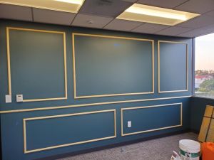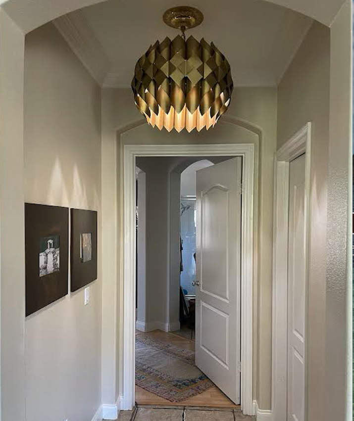 We chose (‘Iron Creek’ by Dunn Edwards), and I loved it, but I felt like it needed a little something else. So I decided to add grids (below) and painted them to give the room more dimension and interest.