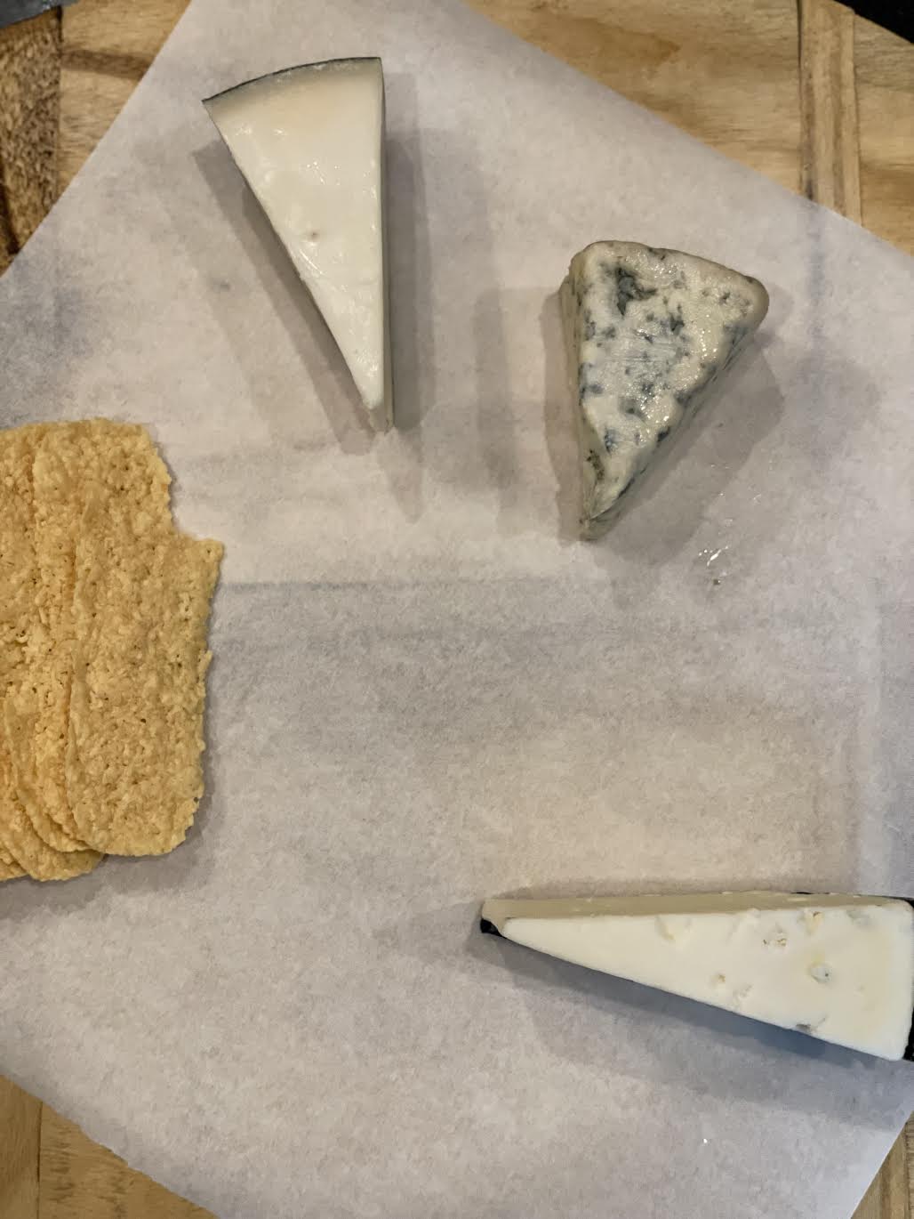The first one is a Herve Mons 1924 Bleu which is both sheep and cow. Then I got a cow’s milk cheese from Whey Creamery, and a goat cheese, Midnight Moon, from Cypress Grove.