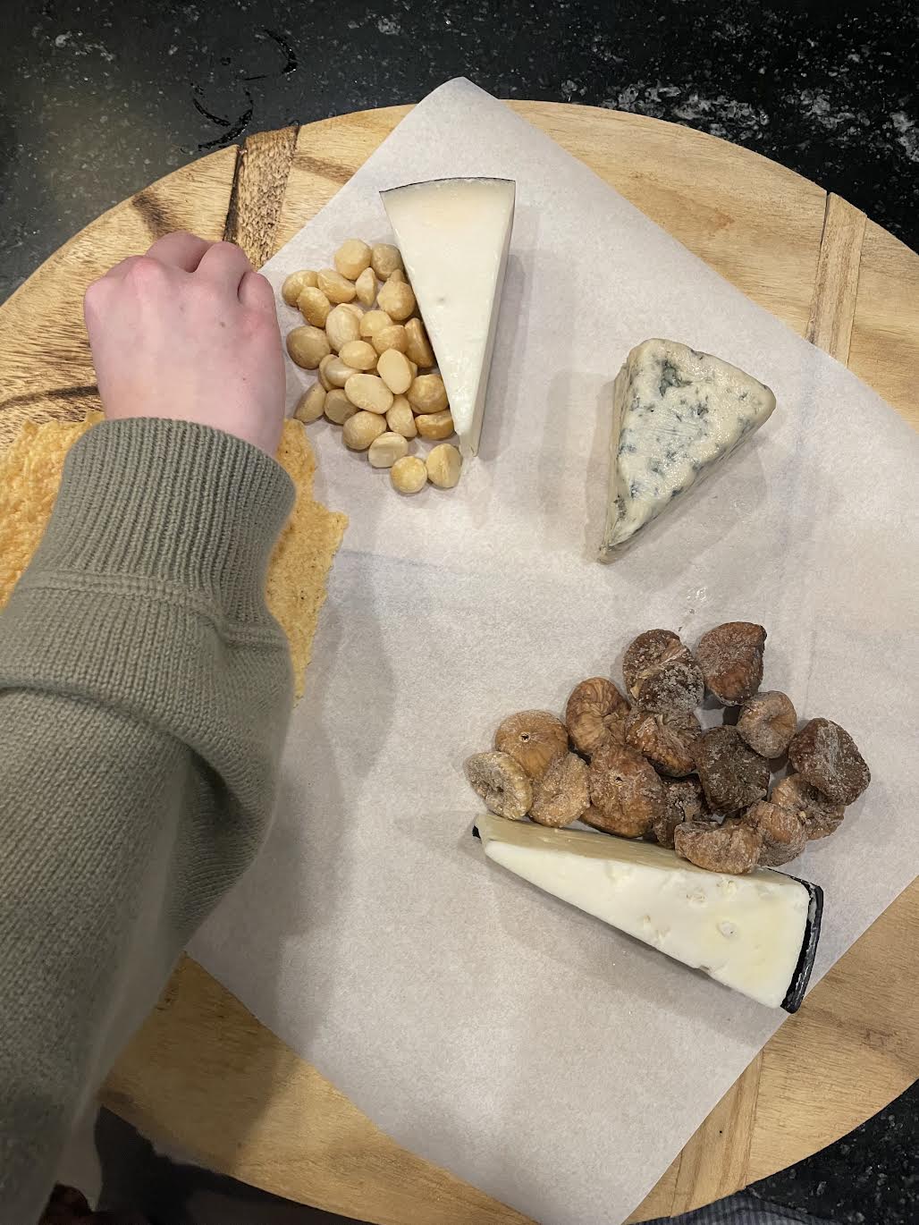 I had such fun shopping for flowers and cheese today and decided not to play favorites and selected a cheese from each animal — goat, sheep and cow. My daughter, Ella, helped put together this fun board for tonight’s festivities.