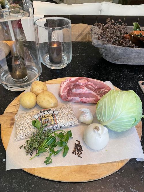 Note: a lot of recipes have you place it in an oven for part of the cooking but I prefer to just cook it on the stove for a very long time. Traditionally, this dish cooked for 2 days.