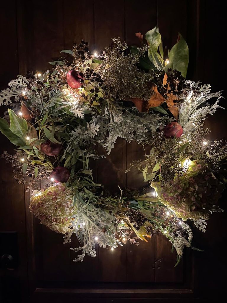 If you’re like me and wondering what you should hang on your front door right now, the answer is — a winter wreath! This time of year is always a little bit of a downer as we come off of such a fun holiday season and the decorations start to come down. With a couple more winter months to go, I typically like to leave some lights up, candles lit and a winter wreath on my front door. This has been my way of adding some warmth and comfort to a couple more winters months. To make a winter wreath, you can use things from your garden, as well as store bought flowers and branches. See below.