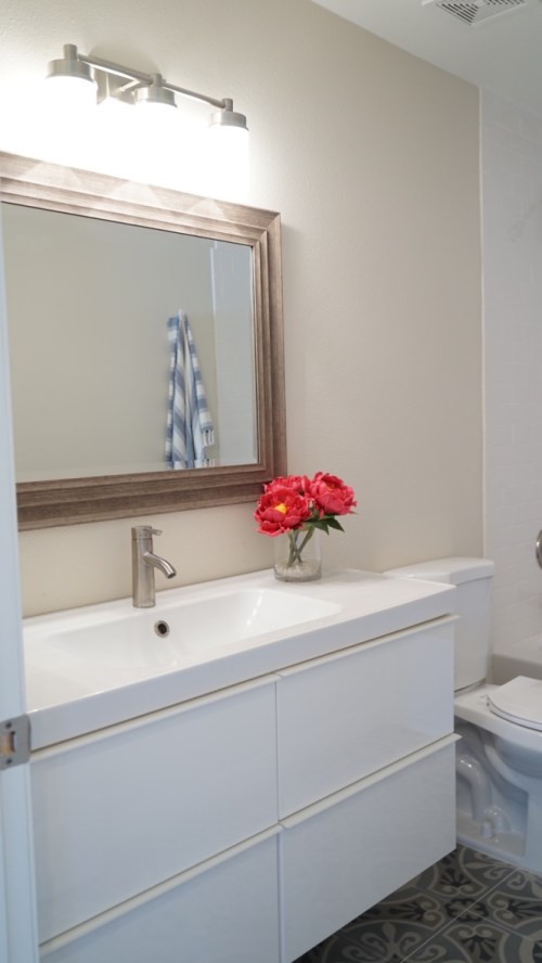 If you didn’t read my last post, this townhouse is a project my husband and I worked on together. He purchased it and then handed over to me to renovate it. Below, are before and after photos of the bathroom.