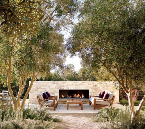 Great idea for those that have an expansive backyard and can add a stone wall & fireplace like this — not only does this help take up some lawn space but it’s also a beautiful focal point.