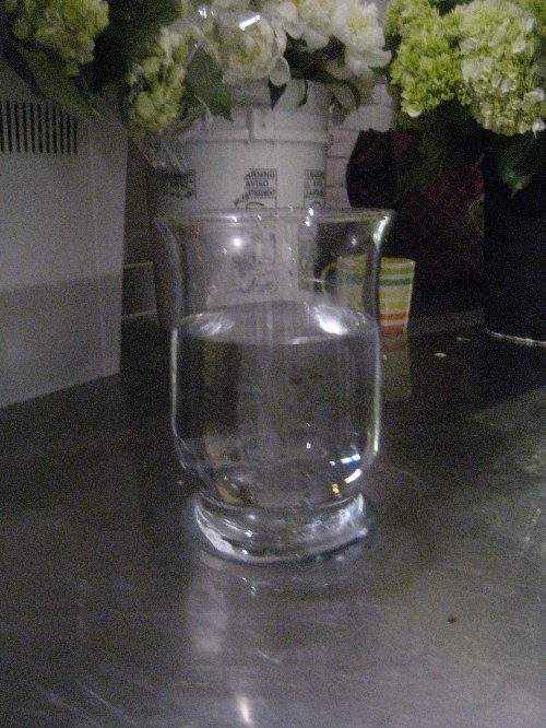 Step 2: Start with hydrangeas (or whatever you have), and loosely fill in the vase, leaving a whole in the center