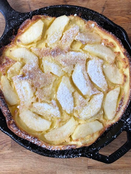 Pour batter over apple and transfer skillet to oven. Bake until pancake is puffed and golden, about 15 minutes. Dust with confectioners sugar and serve immediately.