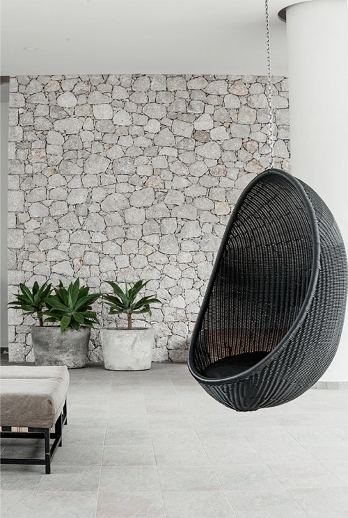 Idea #6: Another alternative to grass is adding some gravel, boxwood and a very zen like fountain — pretty.