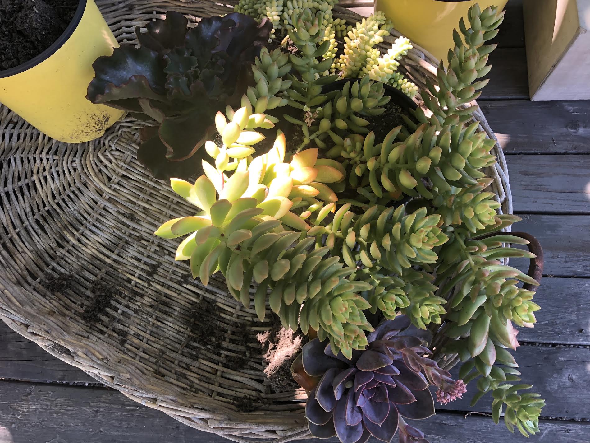 I went to a local grower this morning and grabbed some simple succulents that looked good together. When planting a mix of succulents, I like to take them all out of their pots and remove any excess dirt. Then I place them all on a tray so that they’re easy to grab once planting begins.