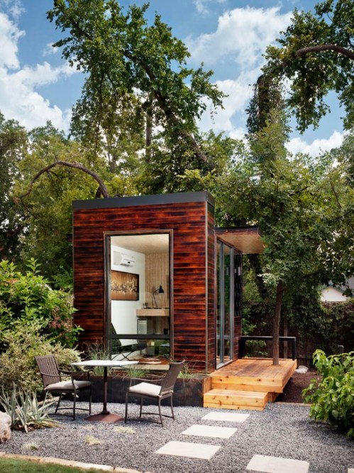 My own (the rusted thing way back there), “under construction”. Not very chic at the moment (recently moved in) but with a little paint, some landscaping, etc. it could turn out quite nice. In a month or two I’ll post an update.