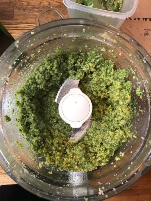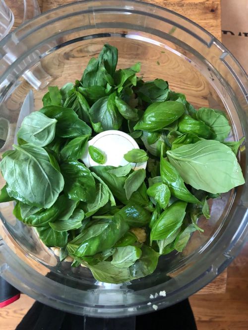 Happy Sunday! Today, I’m making homemade pesto because as the holidays get busier, it’s something I can grab from the fridge and easily put together. Add to your favorite pasta and you have a wonderful homemade meal in minutes. The recipe, so super simple, is below.