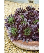 This is “Black Hens & Chicks” — a succulent that works both as a great ground cover and beautifully in a container. I love them in both settings. In places such as Southern California, this plant works great as a ground cover where frost isn’t a problem. In Central Texas, they work better in a container, especially mixed with succulents that are bright green. Zones 4 to 9.