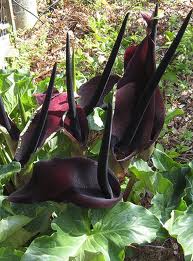 It was the Dracunculus Vulgaris (above) and is native to the Mediterranean. However, it is also known as the Black Arum, the Voodoo Lily, the Snake Lily, the Black Dragon, the Black Lily, Dragonwort, Ragon and the Stink Lily (because of its foul smell).