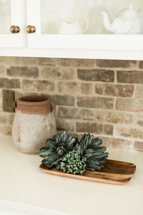 Happy Wednesday! Lately, I’ve been using a lot more faux plants in my designs, including some really beautiful faux succulents. One of my favorite ways to display these faux succulents is by arranging them in stone planters — I love the look!